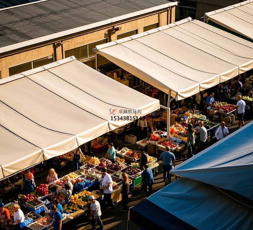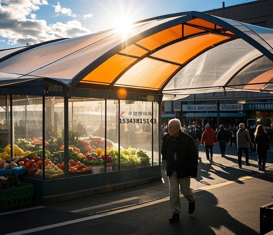 在城市的煙火氣味中,農(nóng)貿(mào)商場是不可或缺的存在,它承載著新鮮食材的匯聚與居民日常生活的快捷。但是,傳統(tǒng)農(nóng)貿(mào)商場頂棚在長期運用中暴露出許多問題,如年久失修易漏雨、空間布局局促、外觀陳腐等。膜結(jié)構(gòu)頂棚的出現(xiàn),宛如一陣清風,為農(nóng)貿(mào)商場帶來了全新的生機與革新。