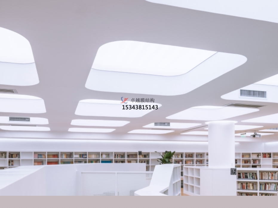 膜結(jié)構(gòu)頂棚可以有效地遮擋陽光和雨水,為圖書館內(nèi)部提供一個(gè)舒適的環(huán)境。同時(shí),膜材料的透光性也可以保證室內(nèi)有足夠的自然光線。
