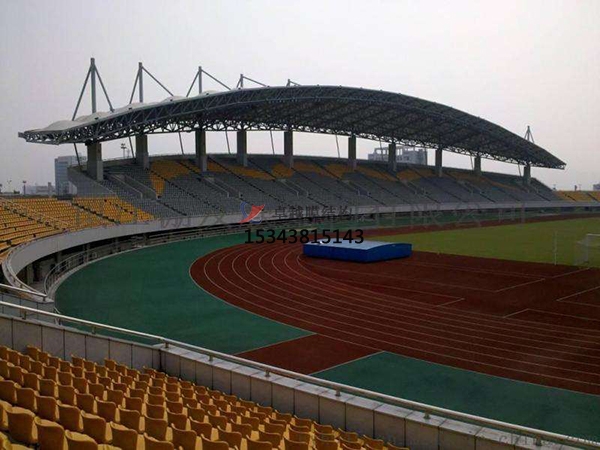 田徑場膜結構遮陽棚特點:田徑場膜結構遮陽棚具有美觀大方、耐用性強、安裝便捷、節(jié)能環(huán)保、透光性好等特點。:膜結構遮陽棚造型獨特、線條流暢,具有很強的現(xiàn)代感和藝術感,能夠與田徑場及周圍環(huán)境完美融合,提升場地的整體美觀度和檔次。采用了高強度、耐腐蝕的膜材,如聚四氟乙烯(PTFE)膜、聚酯滌綸(PET)薄膜等,可有效抵御紫外線、風雨等自然因素的侵蝕,使用壽命長達數十年。膜結構遮陽棚的構件在工廠預制完成后,運輸到現(xiàn)場進行組裝和安裝,過程相對簡單快捷,大大縮短了施工周期,減少了對田徑場正常使用的影響。其具有良好的隔熱保溫性能,能有效降低空調能耗;同時,膜材表面光滑易清潔,減少了維護工作量,且使用壽命長,降低了更換頻率及維修費用??梢宰屪匀还饩€充分照射進來,使田徑場內保持明亮,節(jié)省白天的照明能源,同時避免陽光直射導致的眩光,為運動員和觀眾提供舒適的視覺環(huán)境。