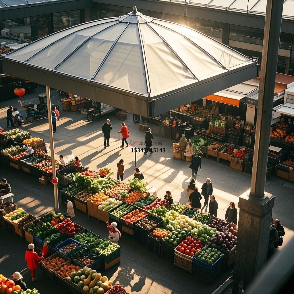 在城市的煙火氣中,農(nóng)貿(mào)市場(chǎng)占據(jù)著獨(dú)特而重要的位置。隨著時(shí)代的發(fā)展與進(jìn)步,傳統(tǒng)農(nóng)貿(mào)市場(chǎng)的面貌也在不斷革新,膜結(jié)構(gòu)在其中的應(yīng)用,為其帶來(lái)了全新的生機(jī)與活力。這種創(chuàng)新的建筑形式正以獨(dú)特的優(yōu)勢(shì),重塑著農(nóng)貿(mào)市場(chǎng)的空間布局與氛圍,為市民的日常購(gòu)物體驗(yàn)增添了別樣的魅力。?