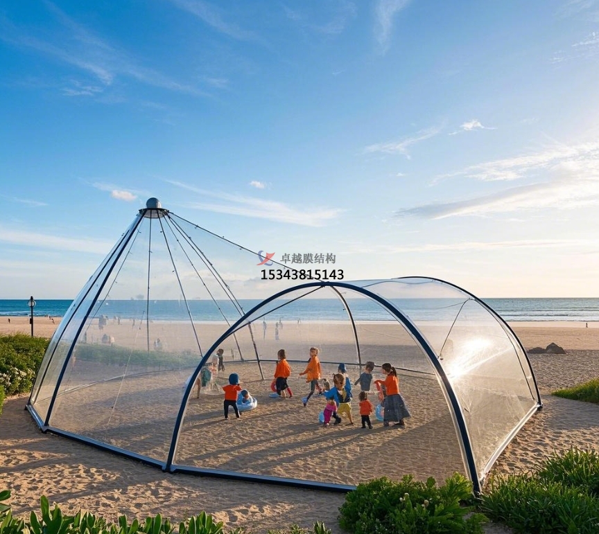 在廣場的兒童游樂區(qū),充氣式膜結構因其輕巧安全、造型可愛的特性,成為理想的遮陽遮雨設施。膜材柔軟且具彈性,可減少兒童在游樂過程中因碰撞造成的傷害,同時選用環(huán)保無毒的膜材,充分保障兒童的健康安全。其色彩鮮艷的外觀與兒童游樂設施相匹配,營造出充滿童趣的游樂氛圍,讓孩子們盡情玩耍。