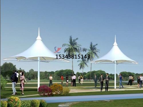 2、預應力施加間隔每次施加預應力間隔24h。第2,3次施加了預應力之時,各處工作點位的人員時刻觀察膜面的張緊度,遇有應力集中的狀況時,應當及時進行調(diào)整,規(guī)避膜面破壞。張拉完景觀膜結構遮陽棚的膜單元后,再安裝焊接蓋口膜。