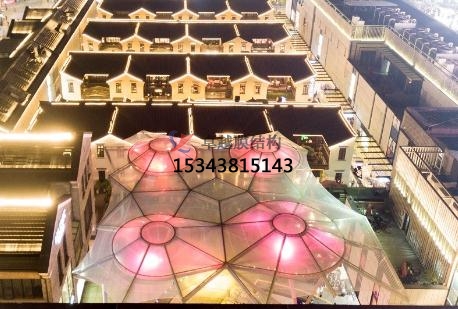 工程特點(diǎn):該項(xiàng)目是國內(nèi)好的單層ETFE加雙層氣枕膜完美嵌合的景觀雨棚建筑,利用ETFE膜材的高透光高自潔性以及雙層氣枕的隔熱能力,雨棚在具有遮陽擋雨功能的同時(shí)還可以實(shí)現(xiàn)自然采光,行人沒有傳統(tǒng)密封建筑的束縛感;另一方面,ETFE膜結(jié)構(gòu)建筑是當(dāng)代更新的建筑應(yīng)用形式之一,工程高度定制,顏值高,具有好的性,天生自帶聚集人氣光環(huán)。