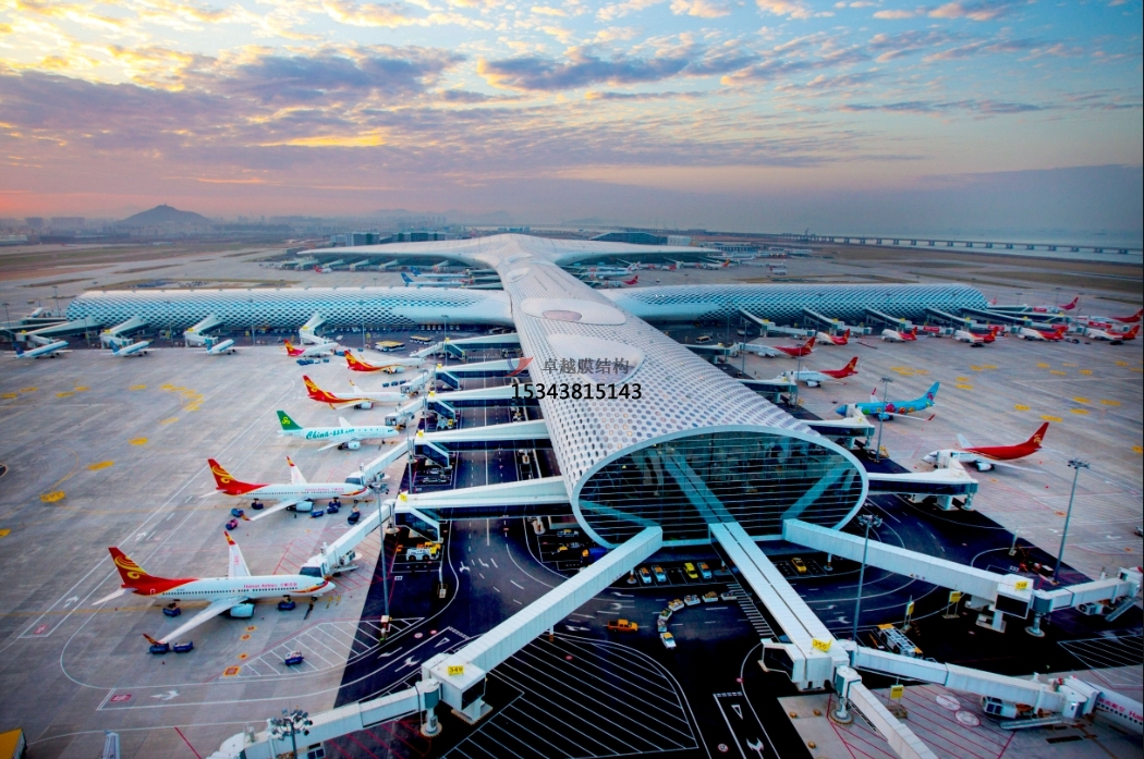 ETFE氣枕具有高度透明性,每層膜的透明度為90-95%,其透明度呈現(xiàn)于大部分太陽(yáng)光譜中,廣泛應(yīng)用于機(jī)場(chǎng),高鐵站,商業(yè)廣場(chǎng),城市建筑景觀(guān)等各類(lèi)標(biāo)志性建筑屋面系統(tǒng)及外立面裝飾,尤其是結(jié)合LED燈光效果將各類(lèi)結(jié)構(gòu)設(shè)施表現(xiàn)出無(wú)限的光彩和亮麗。