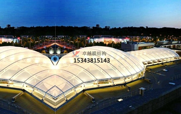 2005年在德國慕尼黑竣工的安聯(lián)球場(chǎng)(66,500 m2),是當(dāng)時(shí)世界上更大的膜結(jié)構(gòu)體育場(chǎng)。整體采用ETFE氣枕膜結(jié)構(gòu)。