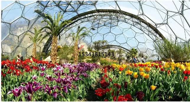 ETFE薄膜具有高透光率,能夠確保植物進行充分的光合作用。同時,其“三膜兩腔”的膜結構充氣后形成一個巨大的泡泡,通過調節(jié)充氣量來調節(jié)室內溫度,實現(xiàn)節(jié)能、環(huán)保的效果。