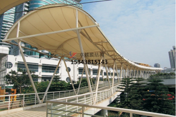 膜結(jié)構(gòu)遮陽篷:膜的遮陽篷材料的結(jié)構(gòu)是膜結(jié)構(gòu)遮陽篷,膜材料,更大的特點是高強度,耐久性好,阻燃,清潔性好,不受紫外線輻射,使用壽命長,一般15 - 30年。透光率高,透光率為13%,反射熱量的73%,熱量可以吸收一些。