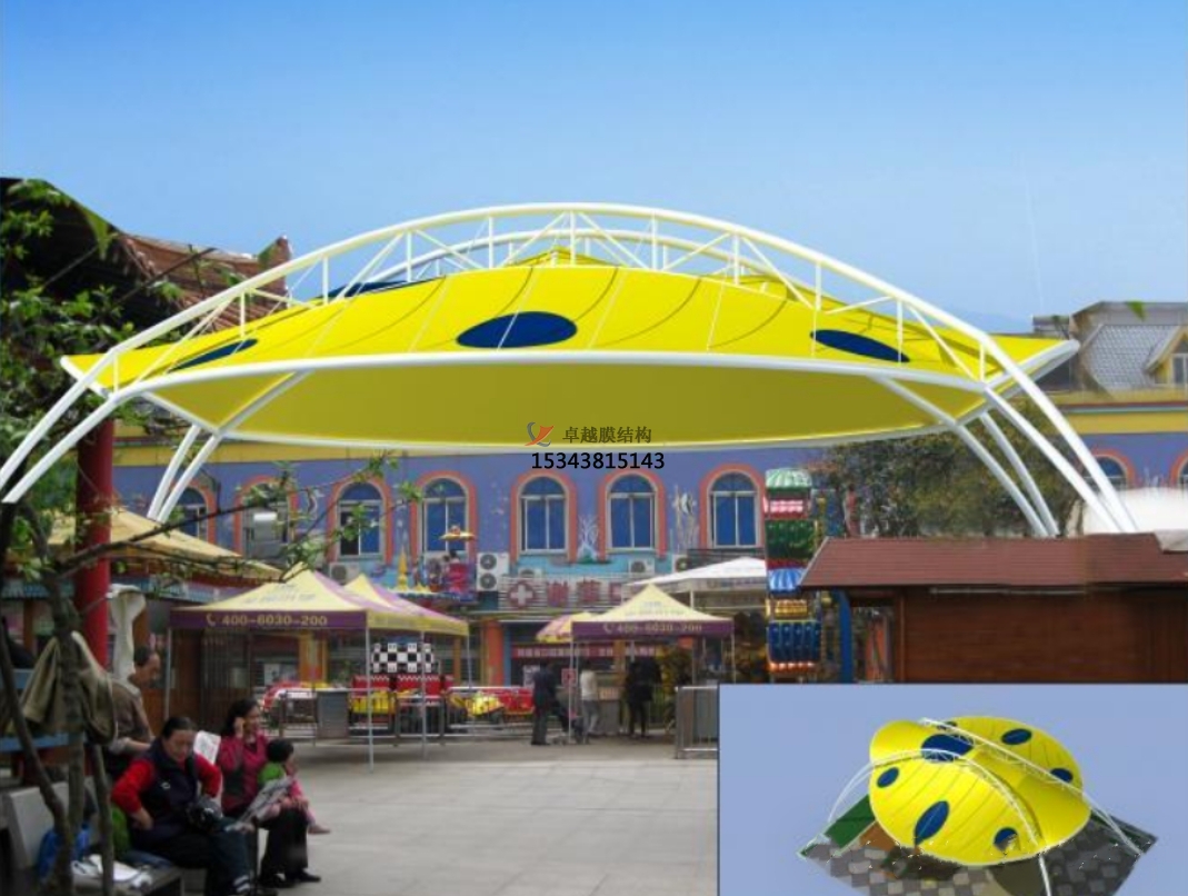 游樂(lè)場(chǎng)膜結(jié)構(gòu)遮陽(yáng)棚是一種新型建筑結(jié)構(gòu),是目前遮陽(yáng)系列中最具代表性和潛力的遮陽(yáng)產(chǎn)品。它是由新的高強(qiáng)度材料,如PVDF或聚四氟乙烯和鈦鋁合金。它能產(chǎn)生預(yù)拉應(yīng)力,形成空間結(jié)構(gòu),并能承受附加荷載。這種膜結(jié)構(gòu)遮陽(yáng)產(chǎn)品打破了傳統(tǒng)的線性遮陽(yáng)產(chǎn)品,得到了世界的認(rèn)可,給了建筑師更大的想象力和創(chuàng)作空間。