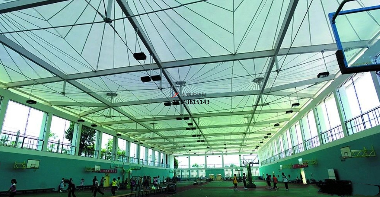風(fēng)雨球場(chǎng)膜結(jié)構(gòu)與傳統(tǒng)球場(chǎng)館相比,安裝周期短,如項(xiàng)目小一個(gè)月內(nèi)可以完工,建筑成本低。風(fēng)雨球場(chǎng)膜結(jié)構(gòu)設(shè)計(jì)、配置,都是按照專(zhuān)業(yè)籃球館進(jìn)行分析、打造,整體保證球場(chǎng)場(chǎng)地運(yùn)營(yíng)完善度。采用膜材PVDF、PTFE、ETFE具有防水、隔熱、透光或阻光等建筑功能,選用優(yōu)質(zhì)Q235鋼材,堅(jiān)固耐用。