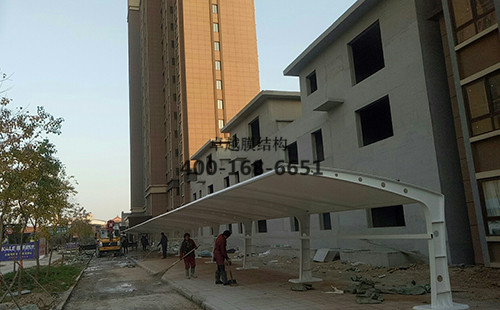 新鄉(xiāng)市北辰悅府車棚/頂棚膜結(jié)構(gòu)、鋼結(jié)構(gòu)設(shè)計、加工、運輸、安裝。
