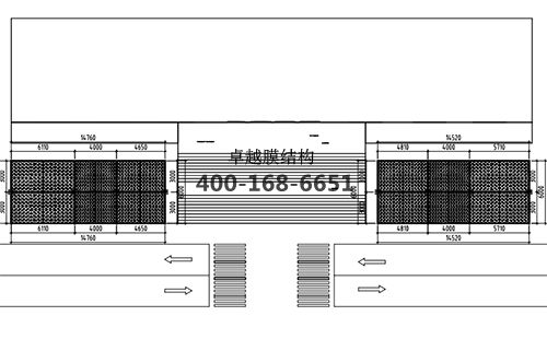 本工程膜材采用白色高端國產(chǎn)膜材PTFE高自潔環(huán)保建筑膜材A級(jí)防火,鋼結(jié)構(gòu)采用更好的標(biāo)準(zhǔn)Q235B鋼材,表面采用酚醛底漆處理,面漆采用白色鋼結(jié)構(gòu)專用快干磁漆。