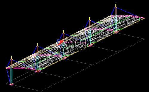 本工程膜材采用白色高端國產星益達PVDF高自潔環(huán)保建筑膜材,鋼結構采用更好的標準Q235B鋼材,表面采用酚醛底漆處理,面漆采用白色鋼結構專用快干磁漆。