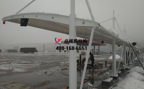 膜結構車棚/頂棚工程項目,1月2日我們卓越膜結構公司人員開始到現場施工。1月10日竣工。