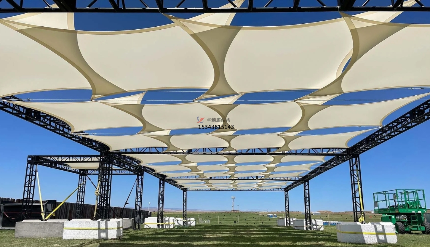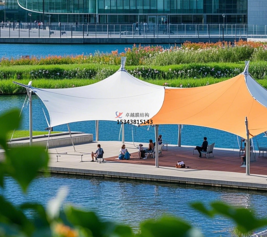 膜結(jié)構(gòu)具有出色的環(huán)境融合性。在公園的自然環(huán)境中,白色的膜材與翠綠的樹(shù)木、湛藍(lán)的天空相互映襯,相得益彰。它不會(huì)突兀地破壞自然景觀,反而像自然生長(zhǎng)出來(lái)的一部分,巧妙地融入其中。在廣場(chǎng)這樣的城市空間,膜結(jié)構(gòu)又能結(jié)合周邊的建筑風(fēng)格,以現(xiàn)代感十足的造型為城市增添活力,成為城市景觀的有機(jī)組成部分。無(wú)論是在古典風(fēng)格的廣場(chǎng)周邊,還是在充滿現(xiàn)代氣息的公園內(nèi),膜結(jié)構(gòu)都能找到與之契合的設(shè)計(jì)方案,和諧共生。
