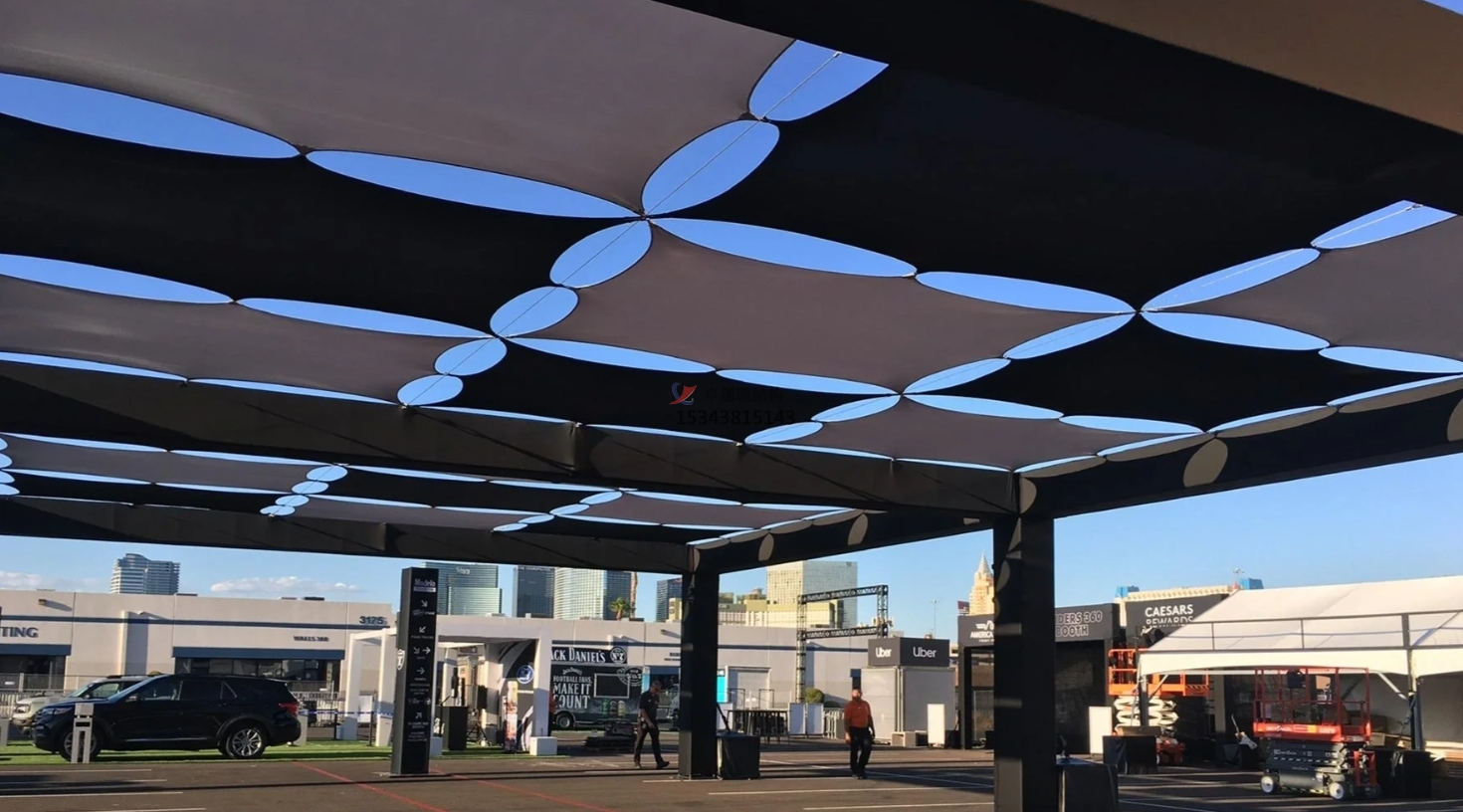 膜結(jié)構(gòu)突破了傳統(tǒng)建筑的刻板印象,擁有豐富多樣的造型。在廣場(chǎng)上,它可以是巨大的傘狀結(jié)構(gòu),為人們提供廣闊的遮陽(yáng)空間,那流暢的曲線,仿佛是被風(fēng)吹拂的裙擺,輕盈而優(yōu)雅;在公園中,膜結(jié)構(gòu)又能設(shè)計(jì)成靈動(dòng)的波浪形,與周圍的綠樹(shù)、草坪相呼應(yīng),如同起伏的綠色海洋中涌起的白色浪花,成為視覺(jué)焦點(diǎn)。其造型既可以簡(jiǎn)潔大氣,展現(xiàn)現(xiàn)代都市的簡(jiǎn)約風(fēng)格,又能通過(guò)復(fù)雜的曲面組合,呈現(xiàn)出獨(dú)特的藝術(shù)韻味,滿足不同場(chǎng)所的設(shè)計(jì)需求。