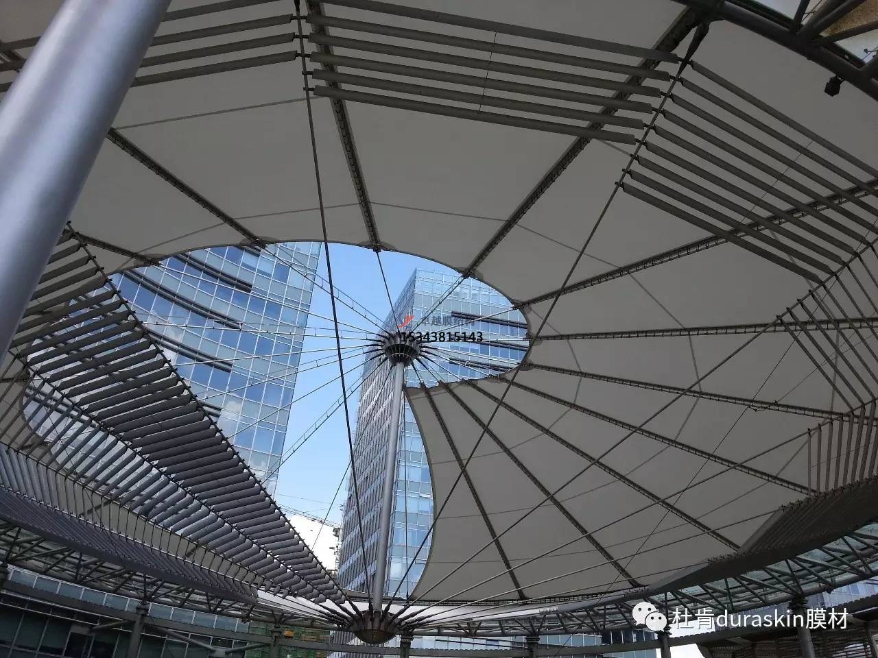 由于自重輕,膜結(jié)構(gòu)遮陽棚工程可以不需要內(nèi)部支撐面大跨度覆蓋空間,這使人們可以更加靈活使用膜結(jié)構(gòu)建筑空間。