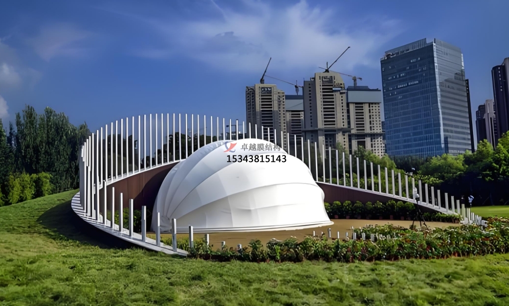 隨著科技的不斷進步與藝術需求的日益提升,舞臺膜結構將朝著更加智能化、環(huán)?;投嘣姆较虬l(fā)展。智能化方面,膜結構舞臺可能會配備智能調光系統(tǒng),根據(jù)演出進程自動調節(jié)燈光效果;或是安裝環(huán)境監(jiān)測設備,實時調整膜材的透光率和通風性能,以適應不同的演出環(huán)境。環(huán)保領域,研發(fā)更環(huán)保、可降解的新型膜材將成為趨勢,進一步降低舞臺搭建對環(huán)境的影響。在多元化上,膜結構舞臺將與多媒體技術深度融合,創(chuàng)造出更加豐富、立體的舞臺視覺體驗,為觀眾帶來前所未有的感官沖擊。