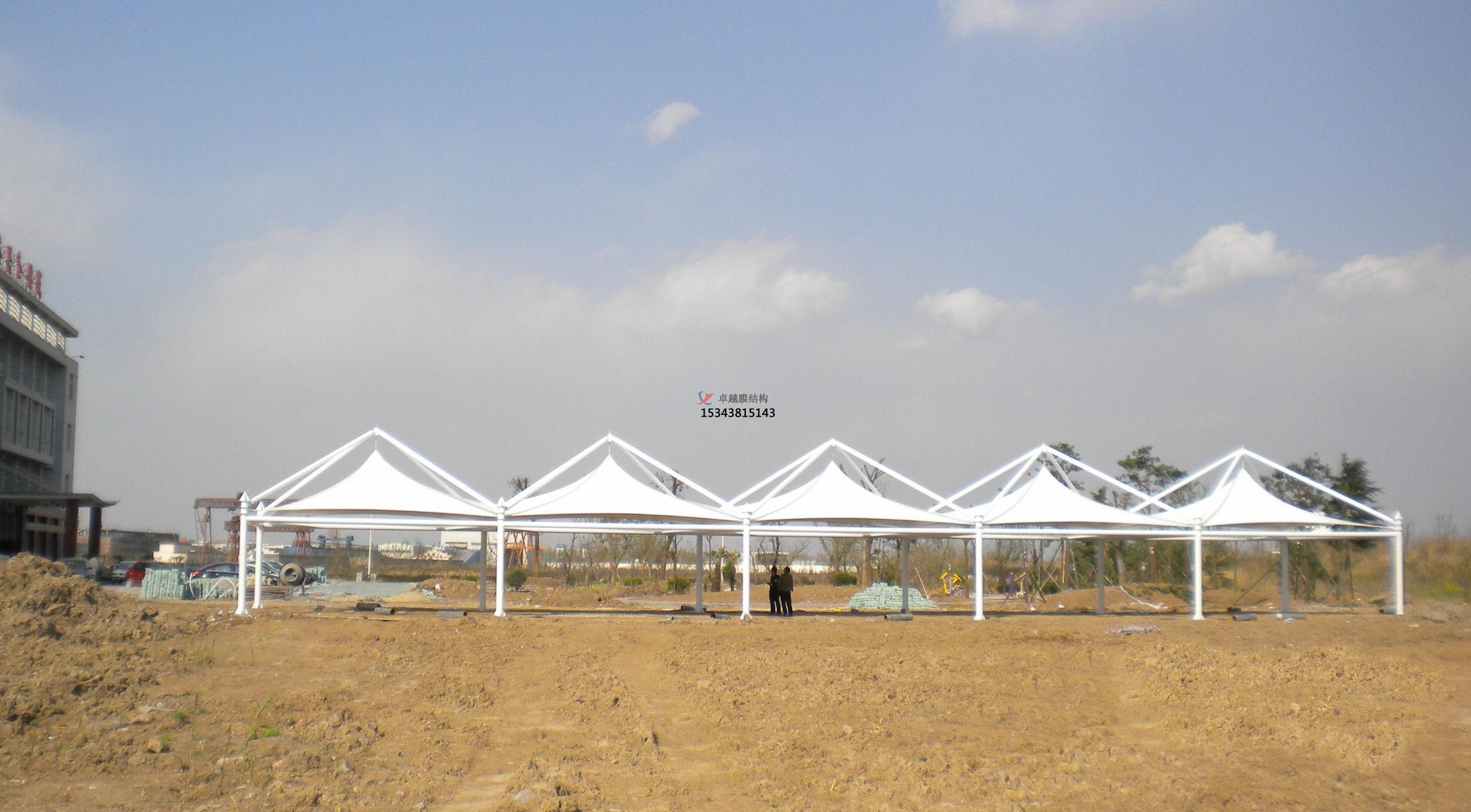 膜結(jié)構(gòu)建筑,在建筑行業(yè)引起了不小的轟動(dòng)。在隨后的幾十年,建筑景觀膜結(jié)構(gòu)遮陽棚得到了迅猛的發(fā)展。景觀膜結(jié)構(gòu)遮陽棚大部分由 鋼材和索構(gòu)成,另外與結(jié)構(gòu)相結(jié)合的膜材也逐漸走向功能化、智能化。膜材具有造型輕巧自由、美觀;透光、節(jié)能、環(huán)保,優(yōu)良的阻燃性能;防污自潔性能;安全、 壽命長(zhǎng)等優(yōu)點(diǎn)。基于這些優(yōu)點(diǎn),建筑膜材脫穎而出,景觀膜結(jié)構(gòu)遮陽棚被稱為“21世紀(jì)的建筑”,應(yīng)用于大型體育場(chǎng)館、入口廊道、購物場(chǎng)、娛樂場(chǎng)、停車場(chǎng)、展覽會(huì)場(chǎng)、植物觀光園等建筑。