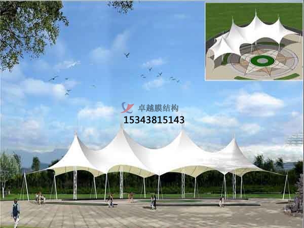 工程結(jié)構(gòu)形式:骨架式膜結(jié)構(gòu)景觀,自然排水。