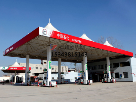 該加油站的拉膜結(jié)構(gòu)采用了高強度聚酯纖維材料,具有輕質(zhì)、耐腐蝕、抗紫外線等特點。膜結(jié)構(gòu)的外表面采用了特殊的防水涂層,能夠有效地防止雨水侵入。此外,膜結(jié)構(gòu)內(nèi)部采用了高強度鋼材,保證了建筑的安全穩(wěn)定。