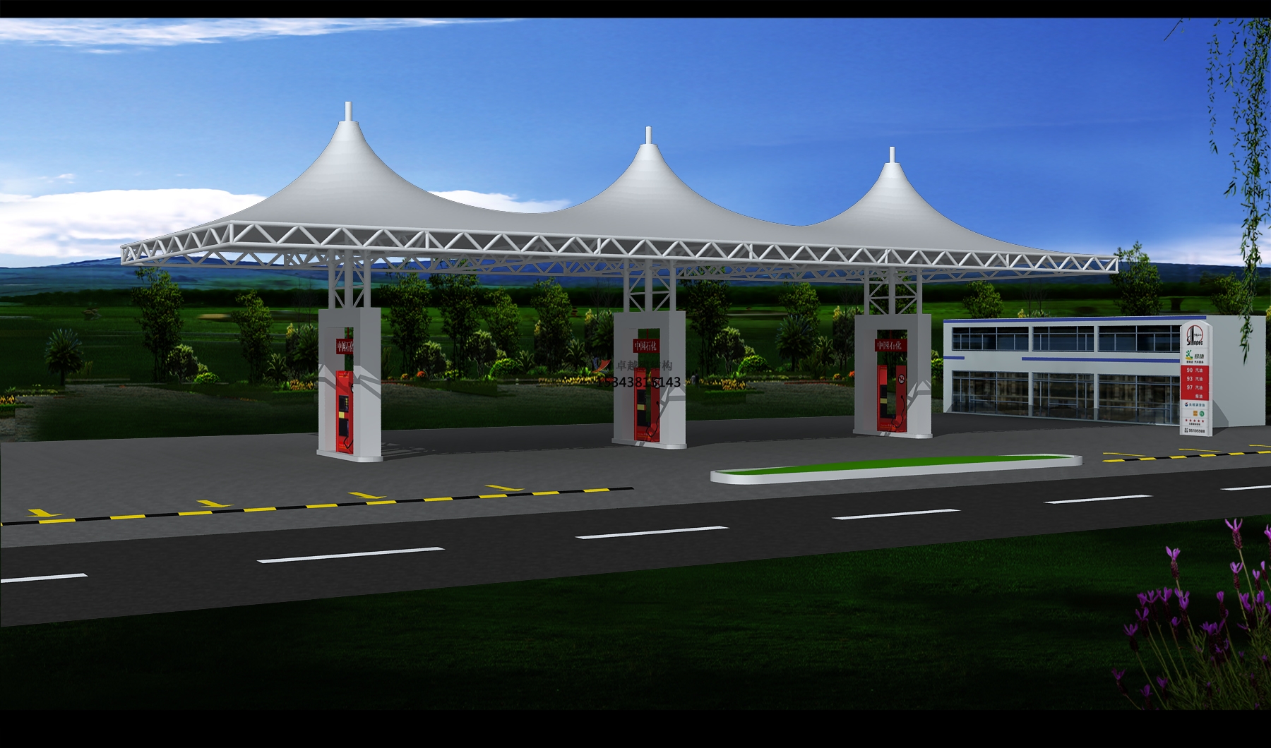 項(xiàng)目結(jié)構(gòu)形式:骨架式膜結(jié)構(gòu)加油站