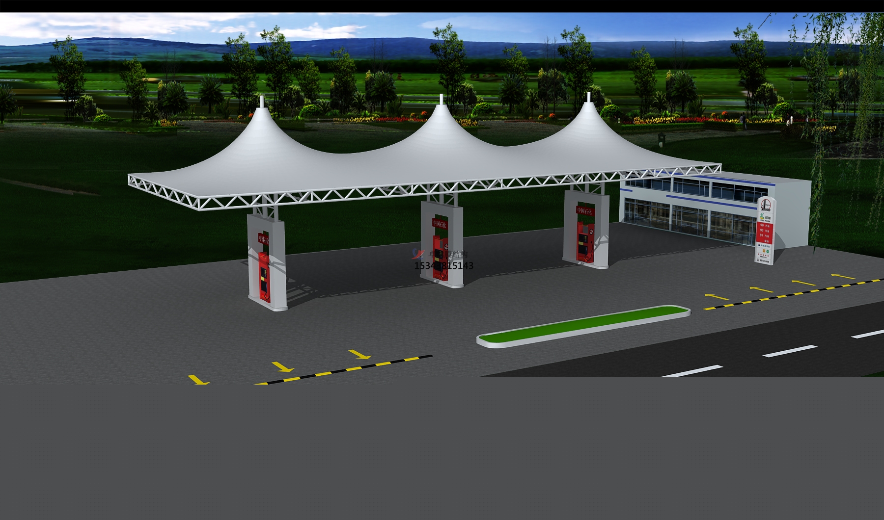 項(xiàng)目概況:中國石油化工集團(tuán)有限公司(以下簡稱公司)的前身是成立于1983年7月的中國石油化工總公司。1998年7月,按照黨中央關(guān)于實(shí)施石油石化行業(yè)戰(zhàn)略性重組的部署,在原中國石油化工總公司基礎(chǔ)上重組成立中國石油化工集團(tuán)公司,2018年8月,經(jīng)公司制改制為中國石油化工集團(tuán)有限公 該站領(lǐng)導(dǎo)決定建設(shè)張拉膜雨棚,我們憑借豐富的經(jīng)驗(yàn)在眾多競爭者中脫穎而出,更終也向該加油站交上了完美的答卷。