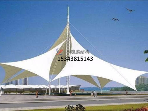 3.色彩性。商業(yè)廣場雨棚搭建在室內(nèi)人們對白色或米白色膜材會有很好的色彩感知,因為這兩種色彩表現(xiàn)出對可見光具備線性光譜透射的特征。透射程度隨透射光波長的增添而增添,這使得透射光比入射光略暖和。透射光譜與纖維及其特性、涂層的厚度等。