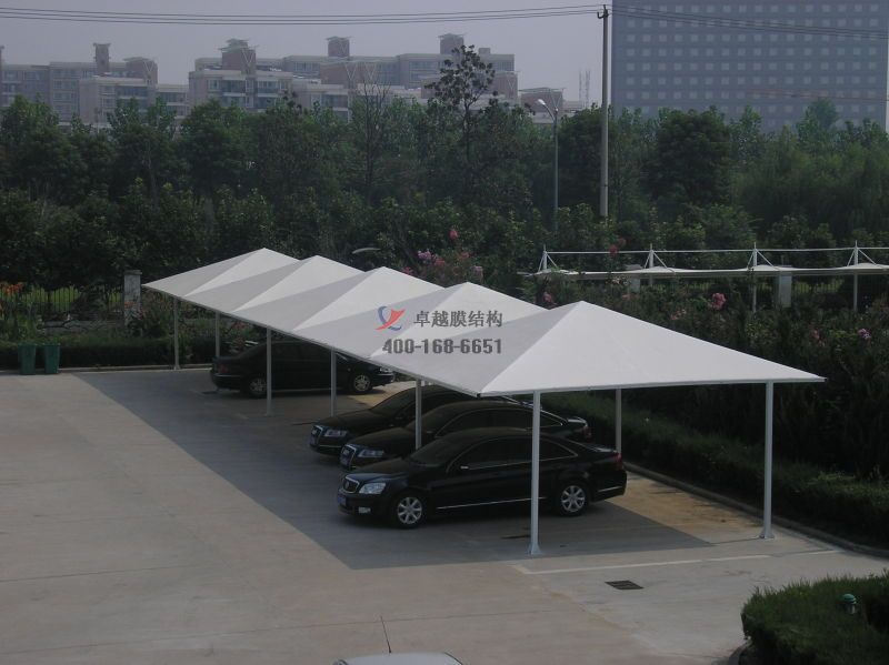 第點(diǎn):膜結(jié)構(gòu)停車棚頂部封板采用茶色(顏色可挑選)陽光板封頂,與車棚整體骨架用壓條鉚接固定,耐酸堿腐蝕,有足夠強(qiáng)度對棚內(nèi)車輛起到保護(hù)作用;