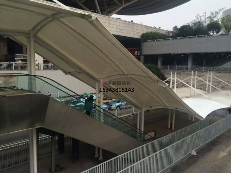 地鐵入口使城市公共空間與建筑空間相鄰的界面,成為城市空間的組成部分它是人們視覺更先接觸的部分,因此,除了功能以外,還應有很強的標識性,并能體現(xiàn)建筑的個性,是建筑環(huán)境和城市景觀的重要組成部分。由于膜結(jié)構獨特的造型是其他結(jié)構類型無法比擬的,故成為近來建筑入口經(jīng)常采用的形式。