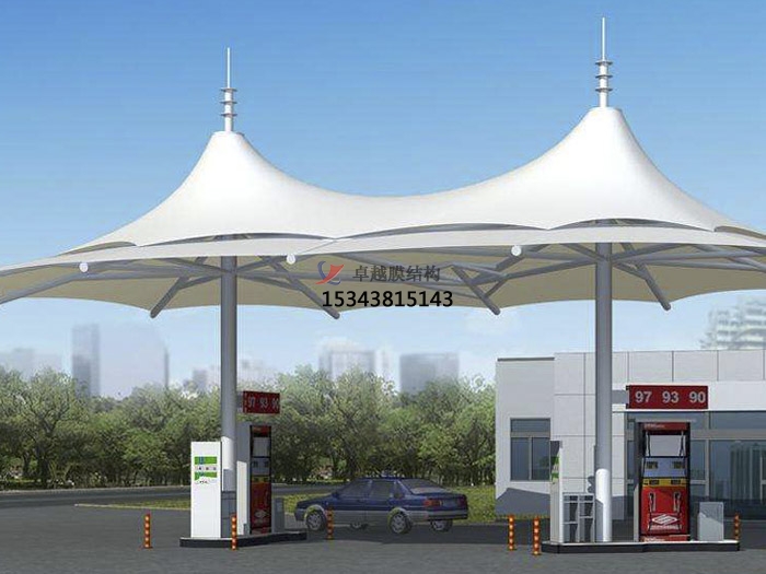 尖頂加油站張拉膜結(jié)構(gòu)效果圖展,常見(jiàn)的加油站張拉膜結(jié)構(gòu)是尖頂?shù)木佣?,白色pvc材質(zhì)的膜也是居多,看上去干凈整潔,而且是阻燃材料,防火,防潮,使用周期久,易于護(hù)理和維護(hù),也是成為眾多加油站的不二之選。