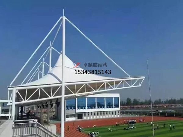 還可以通過更換韌性和光滑度較高的薄膜布料來降低對強風和暴雨的抵抗力,同時增加膜結(jié)構看臺的張力,從而增加牢固度。由于形成膜結(jié)構的原因是屋頂是按照膜材料的張力來展開的,所以我們可以用不銹鋼管連接屋頂,這樣可以有效的抵御風雨的侵襲。