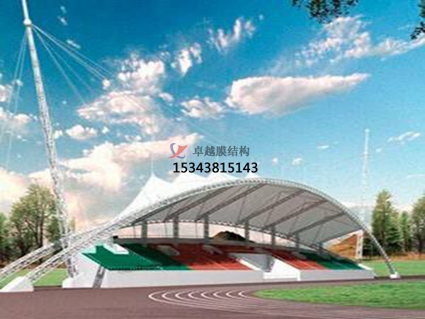 目前國內(nèi)大部分膜結(jié)構(gòu)工程使用的都是聚酯纖維膜材料,即PVC聚酯纖維膜材,表面涂以PVDF聚氟化合物,增強了原有PVC膜材耐污染、抗老化的性能,膜材使用壽命增加到10-15年。聚酯纖維是膜建筑中應(yīng)用更廣泛的纖維,并認(rèn)為是建筑膜材標(biāo)準(zhǔn)產(chǎn)品。聚酯纖維拉伸強度高,彈性好。在拉伸屈服前,纖維具有較大的伸長變形能力,使得在安裝時可進行一定的調(diào)整。但日照將使聚酯纖維老化,彈性與強度等力學(xué)性能降低,所以很多建筑采用PTFE、ETFE等永久性膜材。