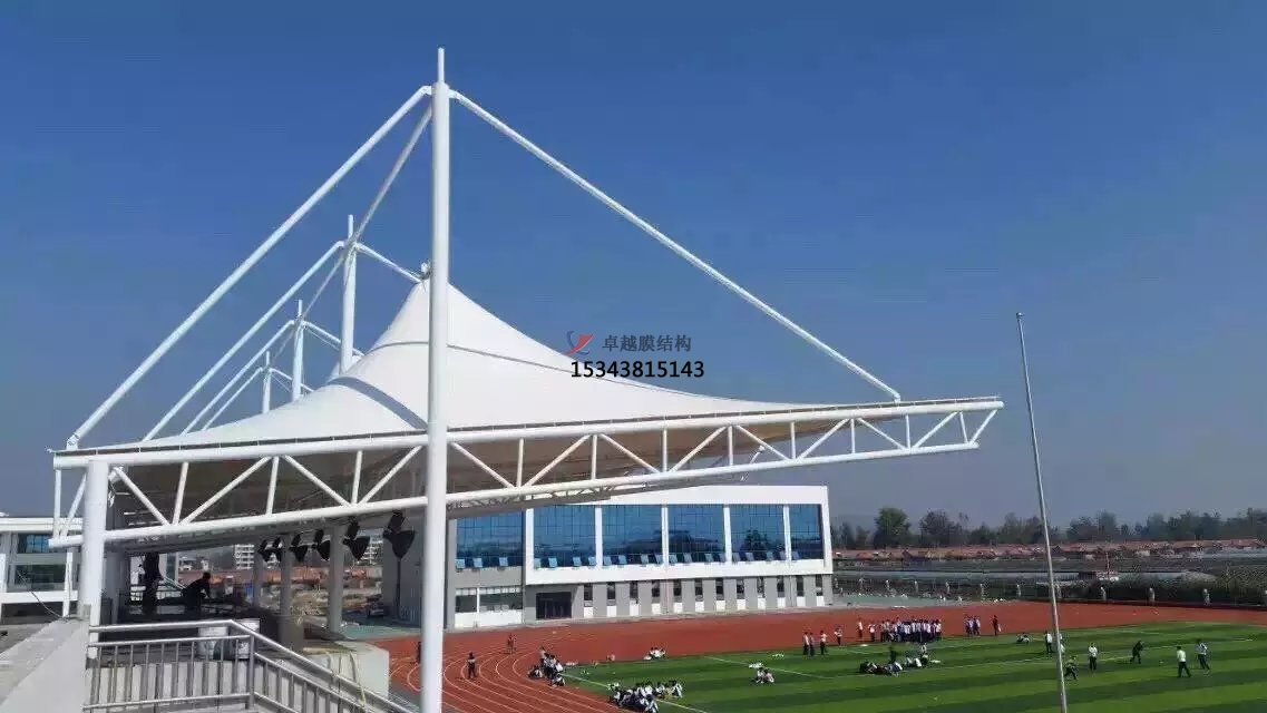 張拉膜看臺(tái)主要用于各類地方體育場(chǎng)主席臺(tái)雨棚,各類學(xué)校體育場(chǎng)看臺(tái)雨棚遮蓋,我公司是國內(nèi)較早從事大懸挑張拉膜結(jié)構(gòu)看臺(tái)設(shè)計(jì)施工的專業(yè)廠家,下面介紹一下我們?cè)谝链ㄖ苓吙h市完工的一些張拉膜看臺(tái)設(shè)計(jì)施工案例,我公司先后在新安縣周邊承接了伊川縣第高級(jí)中學(xué)膜結(jié)構(gòu)看臺(tái)雨篷/主席臺(tái)/舞臺(tái)安裝雨棚、河南省伊川高中張拉膜張拉膜看臺(tái)罩棚、洛寧縣思源實(shí)驗(yàn)學(xué)校張拉膜看臺(tái)遮陽棚等設(shè)計(jì)施工項(xiàng)目,簡介如下: