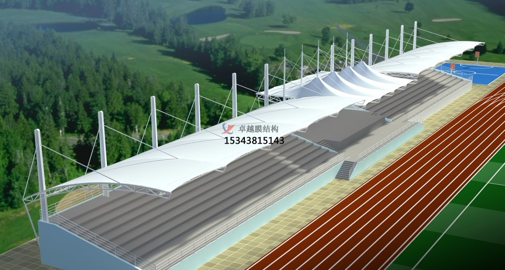 張拉膜看臺(tái)主要用于各類地方體育場主席臺(tái)雨棚,各類學(xué)校體育場看臺(tái)雨棚遮蓋,我公司是國內(nèi)較早從事大懸挑張拉膜結(jié)構(gòu)看臺(tái)設(shè)計(jì)施工的專業(yè)廠家,下面介紹一下我們?cè)谑仪f市周邊縣市完工的一些張拉膜看臺(tái)設(shè)計(jì)施工案例,我公司先后在湘西市周邊承接了石家莊職業(yè)技術(shù)學(xué)院看臺(tái)雨棚、河北工業(yè)職業(yè)技術(shù)學(xué)院張拉膜看臺(tái)罩棚、河北省藝術(shù)職業(yè)學(xué)院張拉膜看臺(tái)遮陽棚張拉膜看臺(tái)遮陽棚等設(shè)計(jì)施工項(xiàng)目,簡介如下:
