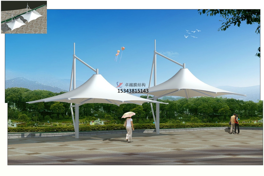 用于張拉膜景觀有二種很好的要修建織物,即涂敷聚四氟乙烯(PTFE)的玻璃纖維織物和涂敷聚乙烯(PVC)的聚酯織物。PTFE玻璃纖維織物具有強度高、半透明、耐火不燃以及自潔性好等長處。雖然資料的確保年限是25年,但依照實際運用的經歷,其希望的運用壽命將會更長。玻璃纖維膜材的僅有缺陷是價格較貴。PVC聚酯織物與玻璃纖維織物比較,其強度等功能稍差,運用年限也較短,但價格卻很廉價,大約在1/5左右。加了改善其功能可在涂層外再加一層面層,聚偏氟乙烯(PVF)或聚偏二氟乙烯(PVDF)。這種面層能維護織物反抗紫外線的侵蝕,并改善其自潔性。