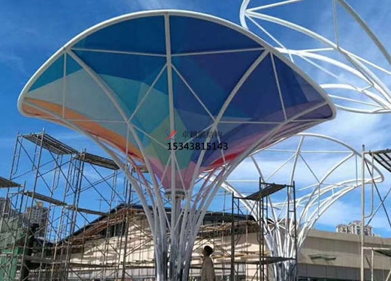 索膜結(jié)構(gòu)建筑施工與建造難點:其在施工中精度要求嚴苛,索網(wǎng)節(jié)點定位誤差需控制在毫米級(如武漢光谷網(wǎng)球中心管內(nèi)預應力桁架張拉),大型項目需分步張拉(如無錫奧體中心分12步提升索網(wǎng))。在特殊工藝要求中,膜片熱合縫寬度需≥40mm(P類膜材)以保證強度,現(xiàn)場焊接環(huán)境(濕度/溫度)直接影響焊縫質(zhì)量。高空作業(yè)也有風險,大跨度屋蓋常需大型吊裝設備,索膜張拉過程存在失穩(wěn)風險,施工安全管控難度高。