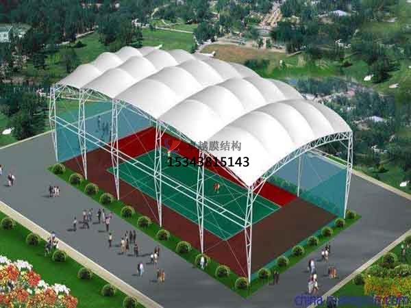 (7)膜結(jié)構(gòu)適用廣。從氣候條件看,膜結(jié)構(gòu)建筑適用的地域廣闊;從規(guī)模上看,可以小到單人帳篷、花園小品,大到覆蓋幾萬、幾十萬平方米的建筑。甚至有人曾設(shè)想覆蓋一個(gè)小城,實(shí)現(xiàn)人造自然。