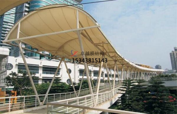 以膜材、鋼索及支柱構(gòu)成,利用鋼索與支柱在膜材中導(dǎo)入張力以達(dá)安 定的形式。除了可實踐具創(chuàng)意,創(chuàng)新且美觀的造型外,也是能展現(xiàn)膜結(jié) 構(gòu)精神的構(gòu)造形式. 大型跨距空間也多采用以鋼索與壓縮材構(gòu)成鋼索網(wǎng)來支撐上部膜材的形式。因施工精度要求高,結(jié)構(gòu)性能強(qiáng),且具豐 富的表現(xiàn)力,所以造價略高于骨架式膜結(jié)構(gòu)景觀。
