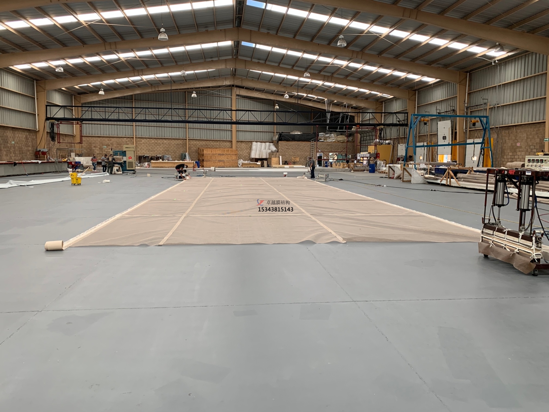 膜材經(jīng)查驗(yàn)后要運(yùn)進(jìn)已除塵的清潔車間。在下料區(qū)、編排放樣區(qū)、駁接區(qū)及三個(gè)區(qū)的銜接處鋪上柔質(zhì)的板膠, 防止膜片直接觸摸地上, 防止磨損或者弄臟膜材。進(jìn)入車間的人員必須穿潔凈的衣服, 換上車間專用的柔軟拖鞋或只穿襪子。
