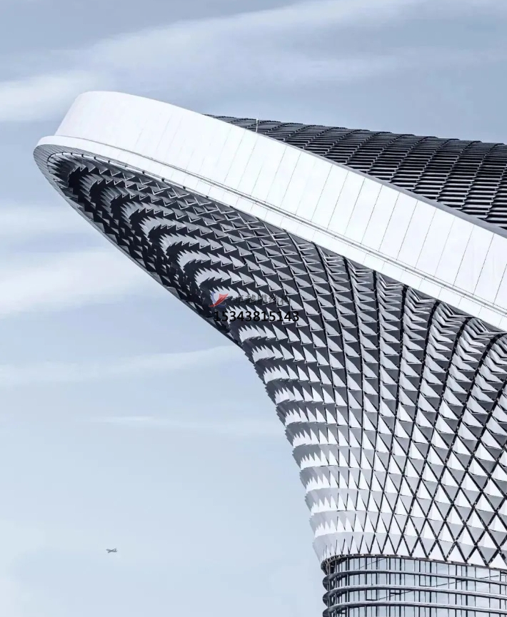 “鳳凰”與成都本土音樂(lè)文化有著很深源淵,與項(xiàng)目所在地“鳳凰山”和其所蘊(yùn)含的場(chǎng)地空間意向也高度契合的概念是貫穿于主舞臺(tái)設(shè)計(jì)中的主題,不僅建筑整體形似鳳冠的造型,1743塊四棱錐雙曲面鋁板幕墻與3340塊魚(yú)鱗疊加鋁板屋面,也如鳳凰的羽毛般,共同形成曲線流暢、肌理光影豐富的立面效果,通過(guò)城市道路之間的開(kāi)闊水景為襯托,主舞臺(tái)向城市展現(xiàn)了純凈水面上“鳳凰于飛”的形象。