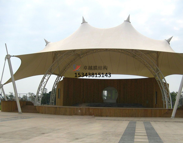 5.抵御天氣的影響:舞臺膜屋面的一個重要作用就是抵御各種天氣變化(如日曬、雨淋、風雪等)對其內部空間的影響,保持建筑物內部的舒適性。選擇膜面的形態(tài)和材料時要考慮到所有可能的天氣狀況,并盡可能利用建筑本身等被動方法來減少能量的消耗。