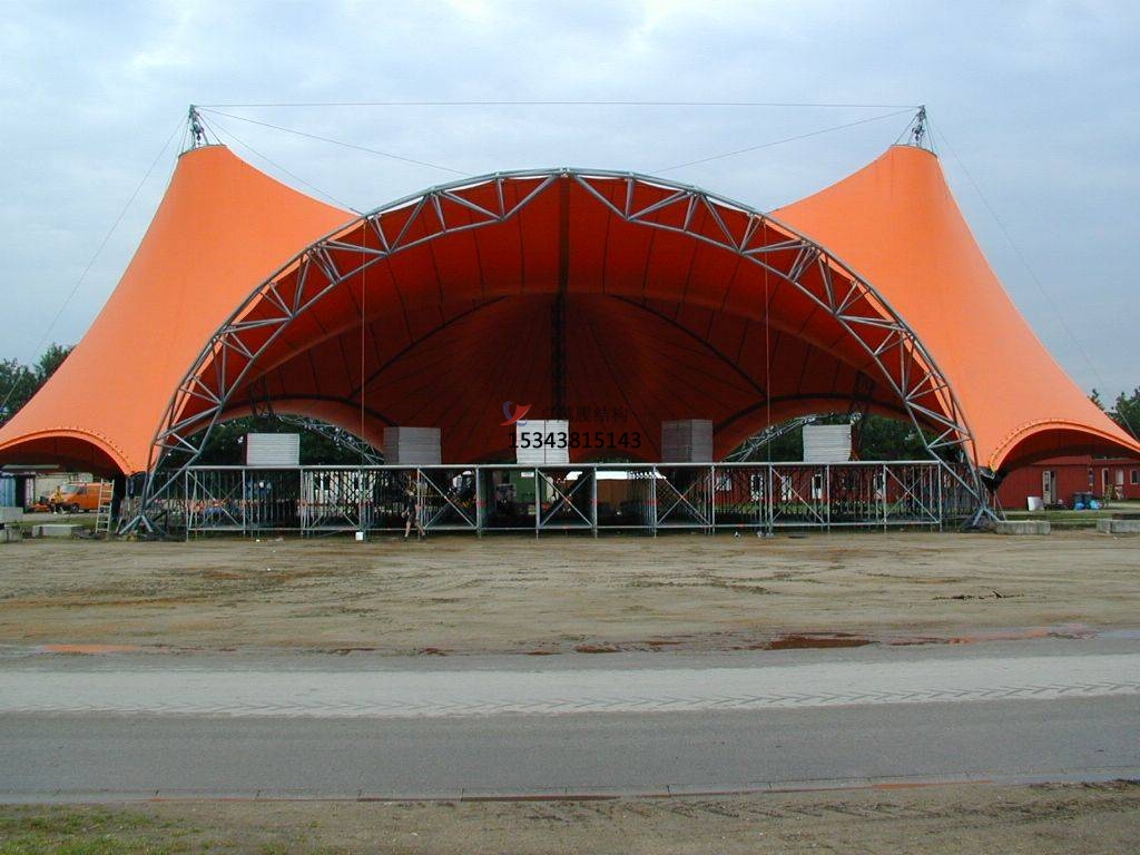 膜結(jié)構(gòu)舞臺(tái)是一種現(xiàn)代化、美觀大方的建筑結(jié)構(gòu)形式,它具有良好的承重能力和聲學(xué)效果,適應(yīng)性強(qiáng),可以為各種類型的演出提供的舞臺(tái)支持。