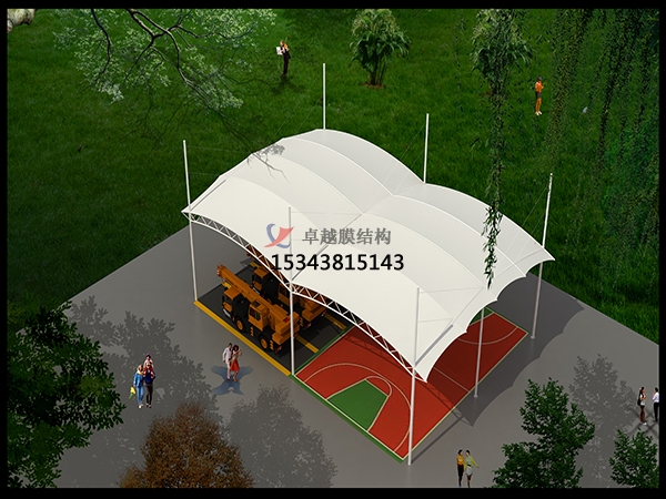 膜結(jié)構(gòu)雨棚是一種全新的建筑結(jié)構(gòu)形式,它集建筑學(xué)、結(jié)構(gòu)力學(xué)、精細(xì)化工與材料科學(xué)、計(jì)算機(jī)技術(shù)等為一體,具有很高技術(shù)含量。其曲面可以隨著建筑師的設(shè)計(jì)需要任意變化,結(jié)合整體環(huán)境,建造出標(biāo)志性的形象工程。