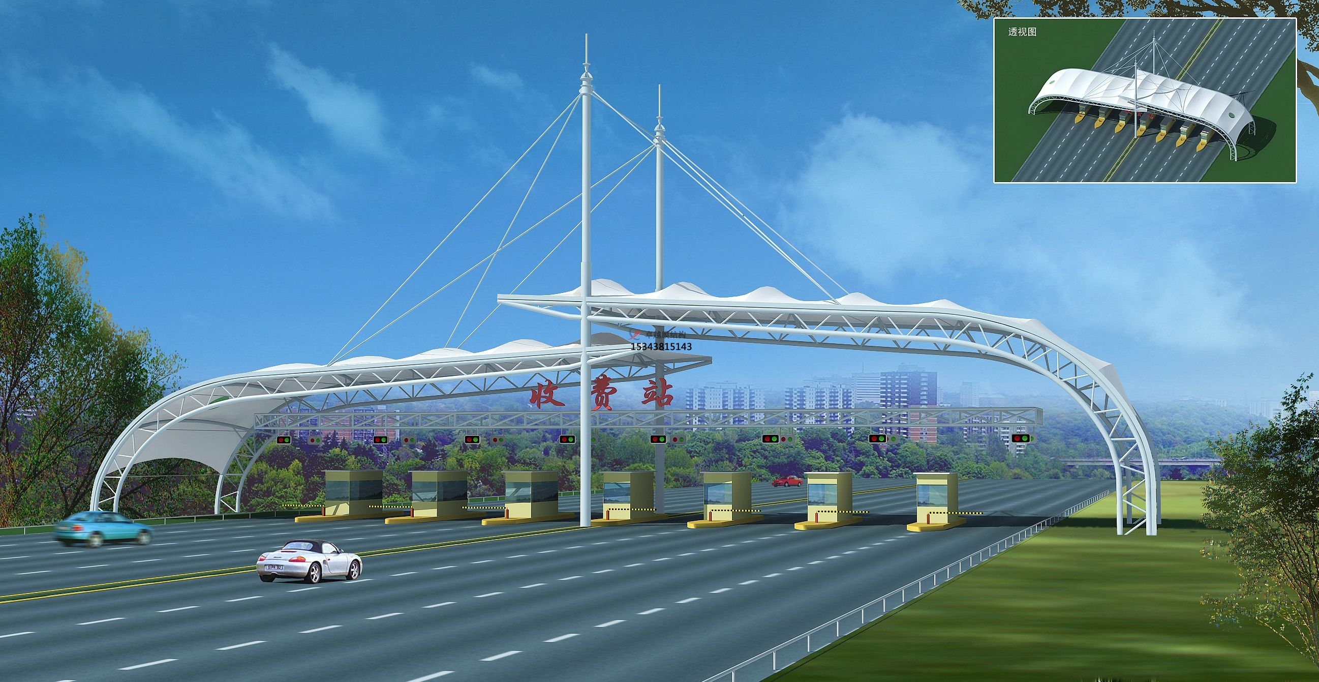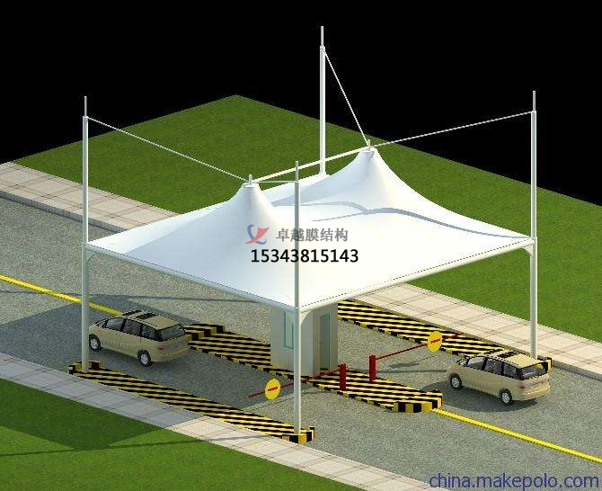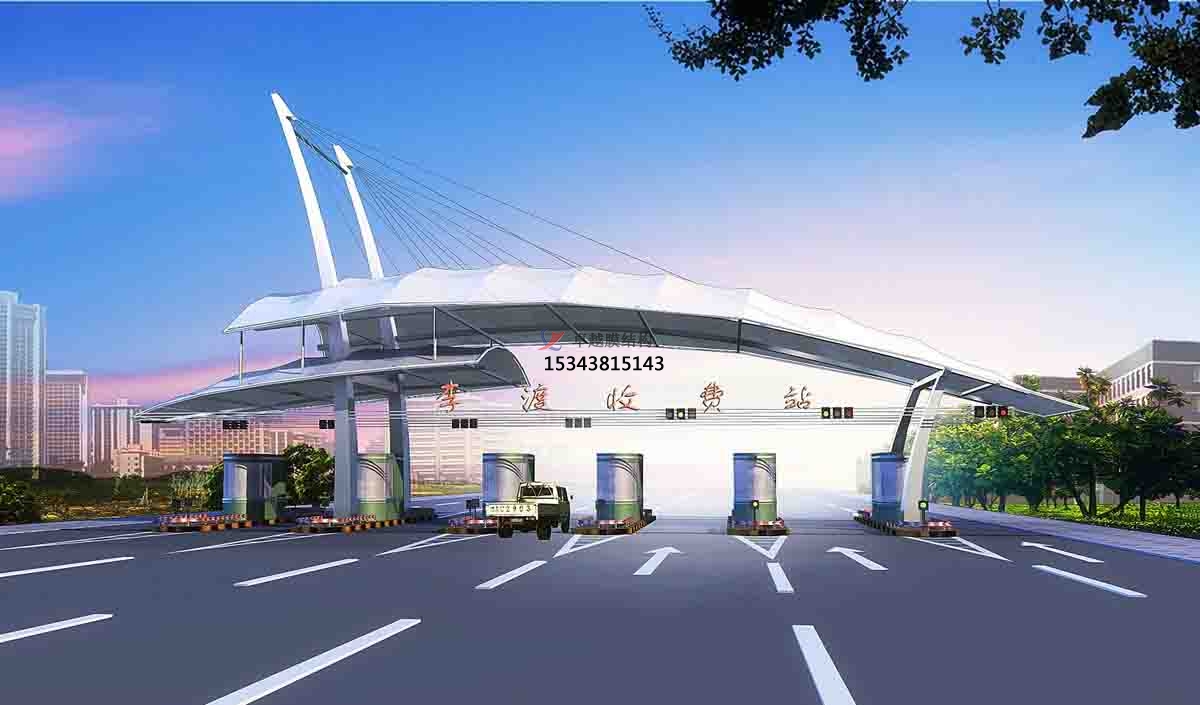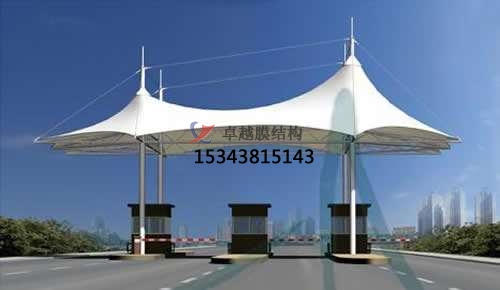 收費(fèi)站膜結(jié)構(gòu)的弧形線條是在體現(xiàn)膜材料得柔性性能的同時(shí)是充分得展現(xiàn)了膜結(jié)構(gòu)建筑的優(yōu)雅內(nèi)涵,其柔美特點(diǎn)與高速路的剛性與速度特點(diǎn)形成了鮮明的對(duì)比。同時(shí),收費(fèi)站膜結(jié)構(gòu)外形也延續(xù)了中國(guó)建筑中對(duì)稱的傳統(tǒng)特點(diǎn),在視覺(jué)上也滿足了大眾的審美觀。