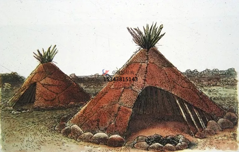膜結構作為一種空間結構形式,最早可以追溯到遠古,人類用木頭搭建結構骨架,覆蓋上獸皮或草席,用繩子或石塊固定在地上,建成簡易的房子