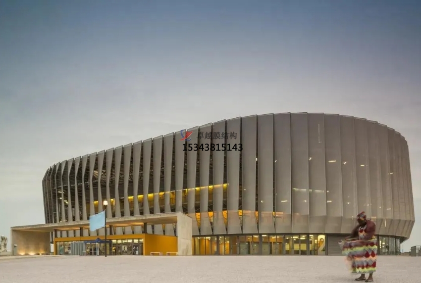 羅安達綜合體育館位于安哥拉首都羅安達,該場地承辦了2013年場地冰球世界杯,這也是場地冰球世界杯第一次在非洲舉辦。項目面積30000㎡??梢匀菁{12000名觀眾,該體育館采用膜結構幕墻作為外立面。為了適應羅安達(安哥拉首都)的氣候特征,體育館上部分以平坦的裝飾圍欄配合膜結構作為建筑表皮。