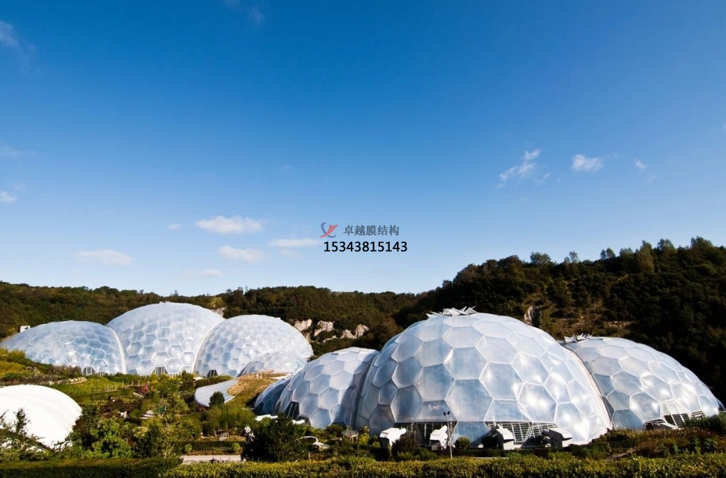 分為氣承式(整體氣壓支撐)與氣脹式(局部氣囊支撐)兩類。如某海灘餐廳項(xiàng)目采用32個(gè)橢圓形氣枕構(gòu)成1655㎡屋面,通過(guò)氣壓差維持結(jié)構(gòu)張力,配合六邊形印花實(shí)現(xiàn)動(dòng)態(tài)遮陽(yáng)。