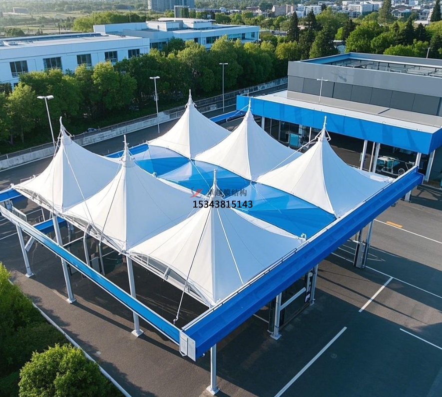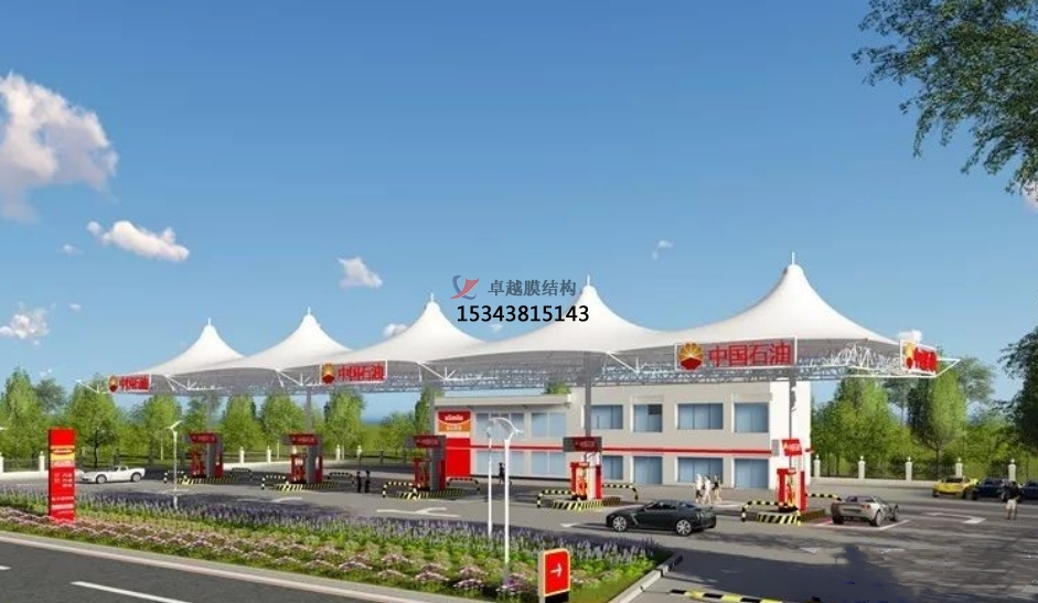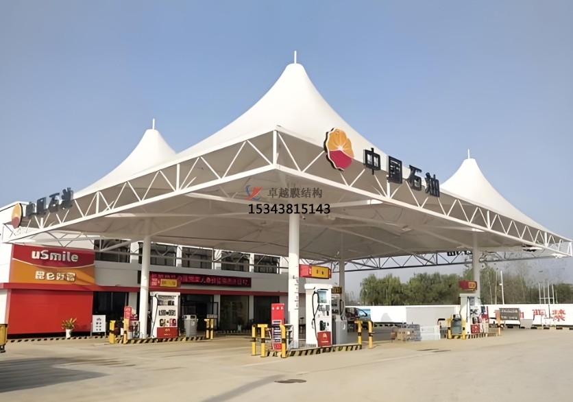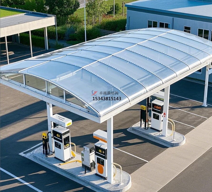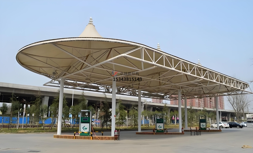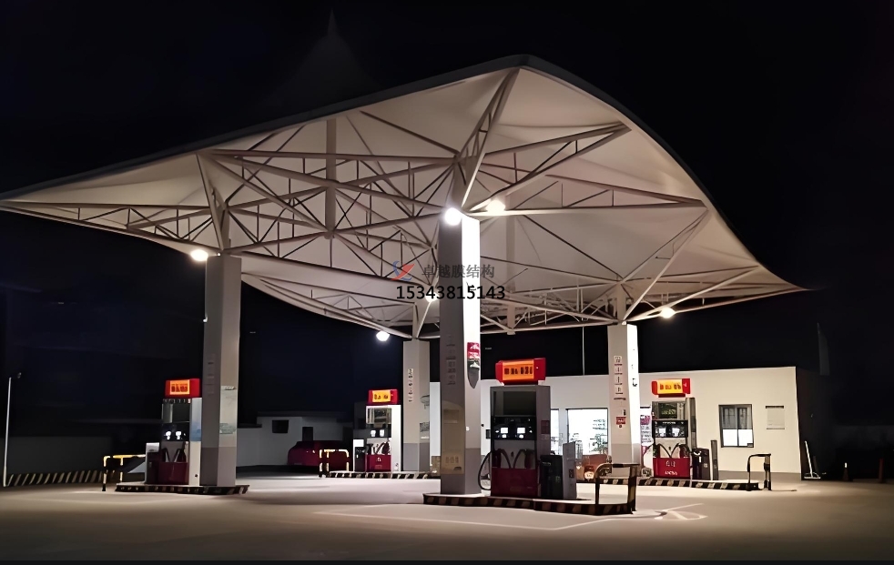 傳統(tǒng)加油站:在傳統(tǒng)加油站建設(shè)中,膜結(jié)構(gòu)頂棚已成為主流選擇。其卓越的耐候性和自潔性能,能始終保持加油站外觀(guān)整潔;良好的透光性?xún)?yōu)化了室內(nèi)照明條件,提升加油作業(yè)效率;堅(jiān)固的結(jié)構(gòu)設(shè)計(jì)確保了設(shè)施的耐用性和安全性,為加油站的長(zhǎng)期穩(wěn)定運(yùn)營(yíng)提供有力保障。