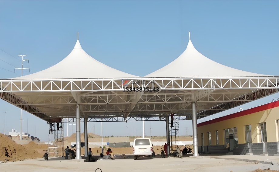 高速公路服務(wù)區(qū)加油站:高速公路服務(wù)區(qū)加油站車(chē)流量大,對(duì)設(shè)施的耐用性和快速施工要求較高。膜結(jié)構(gòu)頂棚憑借其長(zhǎng)使用壽命、便捷施工等優(yōu)勢(shì),能在短時(shí)間內(nèi)完成建設(shè),滿(mǎn)足服務(wù)區(qū)快速投入使用的需求。同時(shí),其美觀(guān)的造型也能為長(zhǎng)途奔波的司乘人員帶來(lái)良好的視覺(jué)感受,提升服務(wù)區(qū)的整體形象。