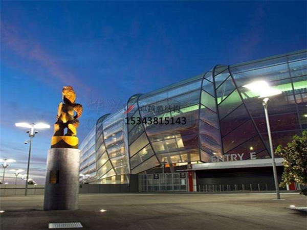 場(chǎng)館看臺(tái)膜結(jié)構(gòu)材料特性與選擇:其材料具有高透光性與自潔功能、耐久性保障。材料采用ETFE膜(0.25毫米厚)或PTFE涂層玻璃纖維膜,透光率可達(dá)40%-60%,減少人工照明依賴,同時(shí)表面防護(hù)涂層使雨水沖刷即可保持清潔。部分場(chǎng)館使用PVC材料,兼具抗紫外線、阻燃及耐候性,適用于多種氣候環(huán)境。通過(guò)抗風(fēng)壓、抗雪荷載及防火測(cè)試,并結(jié)合鋼索網(wǎng)或鋼結(jié)構(gòu)框架提升穩(wěn)定性。材料選擇注重環(huán)保性,如ETFE膜可回收,符合綠色建筑趨勢(shì)。